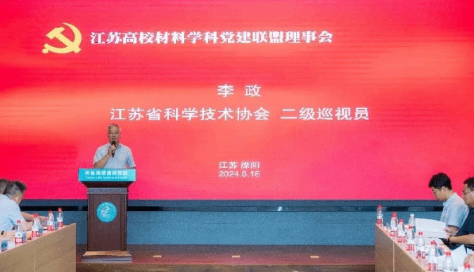 8月16日上午,江苏高校材料学科党建联盟理事会在溧阳召开,并举办党建引领产业创新发展论坛。出席江苏高校材料学科党联盟理事会的领导有江苏省科学技术协会二级巡视员李政,常州市科协党组书记、主席任洪兴,省材料学会秘书长强星以及各有关高校材料学科党建工作负责人。材料学院党委书记唐浩、副院长王金山出席了会议。江苏高校材料学科党建联盟理事会由南京工业大学365英国上市公司在线党委书记高树军主持。