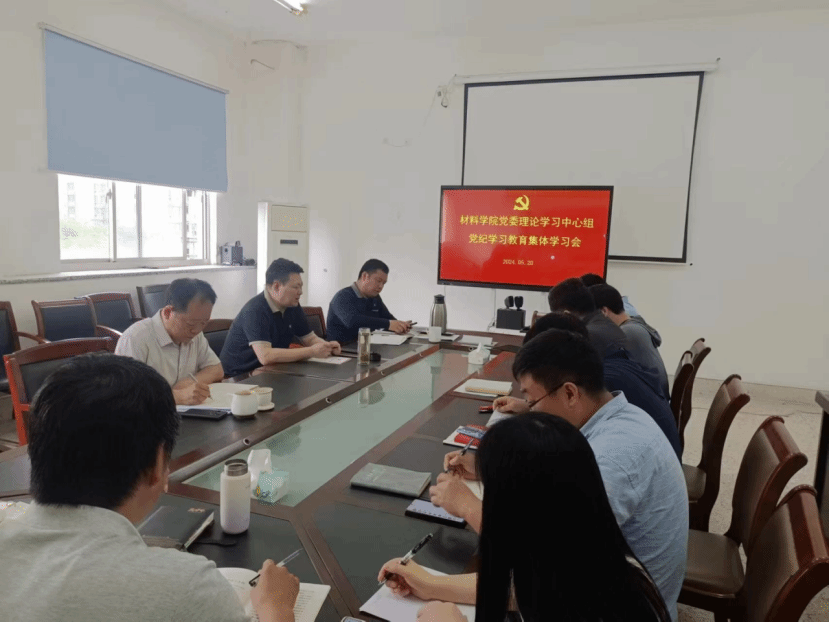 5月20日上午,材料学院党委理论学习中心组在学院第一会议室开展党纪学习教育集体学习会,围绕《中国共产党纪律处分条例》进行专题学习研讨。学习会由学院党委书记唐浩主持,党委理论学习中心组成员参加。