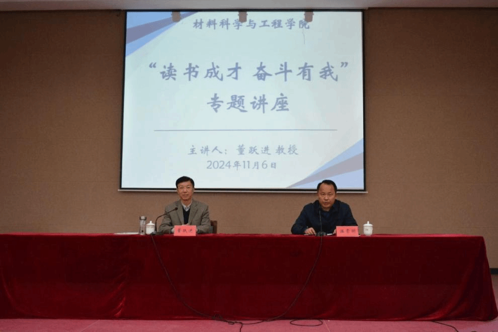 为深入贯彻落实立德树人根本任务,引导学生坚定理想信念,树立远大抱负,进一步落实推动新生大学第一课和关工委优质化建设工作,11月6日下午,材料学院邀请“银龄理论宣讲团”专家董跃进教授,在五四报告厅开展“读书成长 奋斗有我”专题讲座。材料学院党委书记唐浩出席,讲座由学院党委副书记温崇明主持,新生辅导员及2024级全体学生参加。