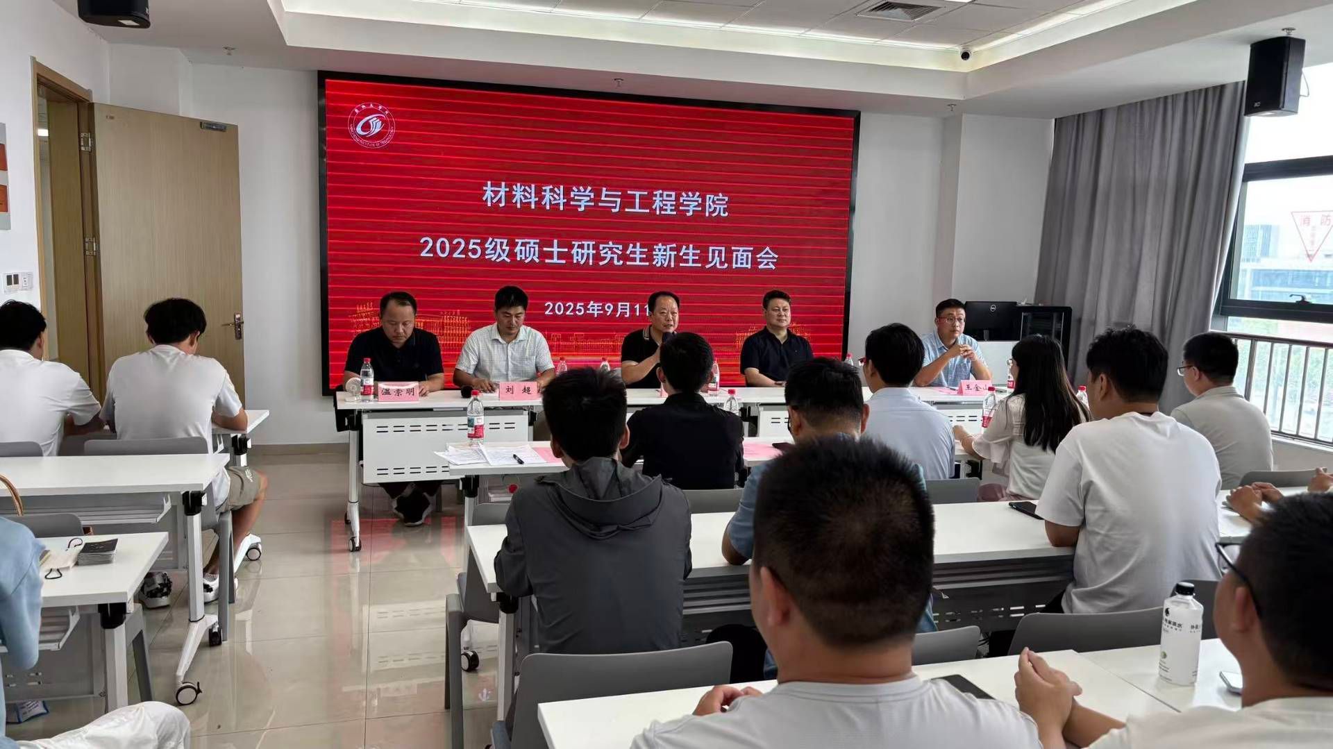 9月11日下午,材料学院2025级研究生新生开学见面会在盐龙湖校区429教室举行。会议由材料学院副院长刘超主持,院长罗驹华、党委书记唐浩、副院长王金山、党委副书记温崇明、教科研办公室主任瞿建、研究生秘书赵航、研究生辅导员王威力、薛凌云、刘铠豪及2025级全体研究生新生参会。