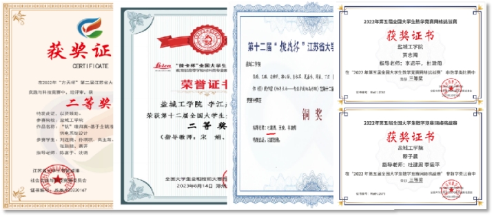 学院以学科竞赛为载体,培养学生创新精神。鼓励学生进教师课题组、进实验室,做好学科竞赛组织和服务工作。2023年积极申报校级以上大学生创新创业训练计划项目52项,其中省级以上项目30项。组织学生参加学科竞赛,获得国家级奖项18项,其中全国普通高校大学生竞赛排行榜竞赛项目奖项13项。