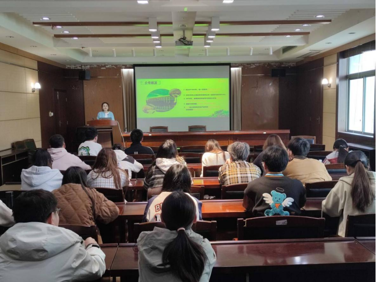 宣讲会伊始,一段精彩的企业宣传片让同学们对公司的发展历程、企业文化、业务范围等有了初步的了解。金发科技股份有限公司是一家聚焦高性能化工新材料研发、生产、销售和服务的企业,致力于为创造更加安全、舒适、便捷的人类生活提供全新的材料解决方案,旗下拥有60家子公司,产品广泛应用于汽车、家用电器、电子电气、通讯电子、新基建、新能源、现代农业、现代物流、轨道交通、航空航天、高端装备、医疗健康等行业。付兰珍为同学们具体介绍了企业的整体架构、行业规模、岗位需求、人才培养制度、薪资福利等内容,她鼓励同学们积极投递简历,结合自身实际需求制定长远规划,并详细讲解了网申的流程。